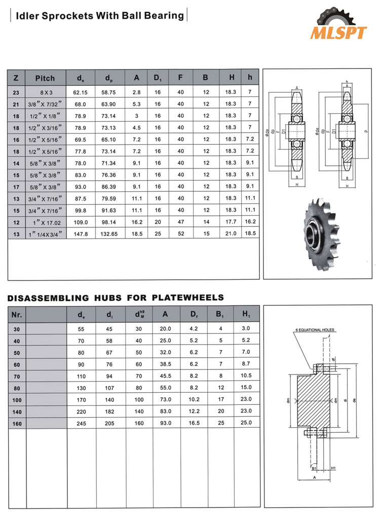 idler sprockets with ball bearing
